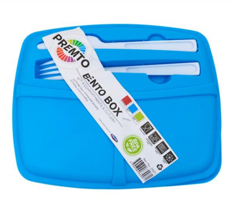 Premto Bento Box With 3 Compartments & Cutlery - 3 Asst