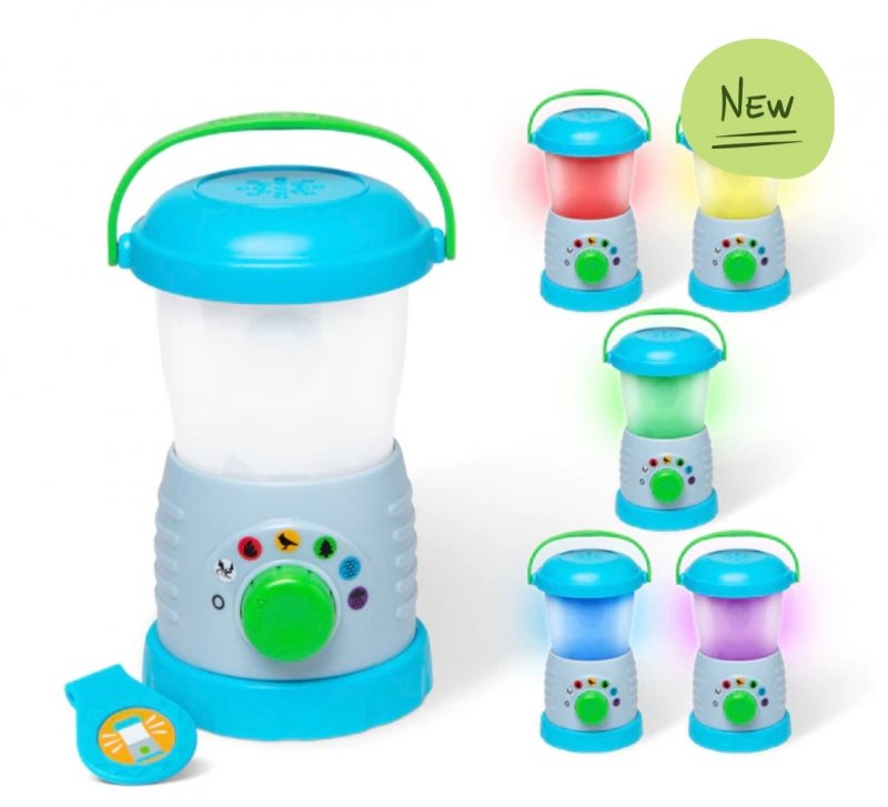 - Durable camping lantern with 6 colored lighting options (white, red, yellow, green, blue, purple) and sound effects to go with each color
