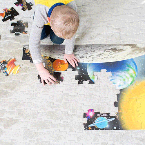 You’ll need lots of “space” to assemble this beautifully illustrated 48-piece puzzle of our solar system! Extra-thick cardboard jigsaw pieces are built to last, and their easy-clean surface keeps this puzzle looking new.