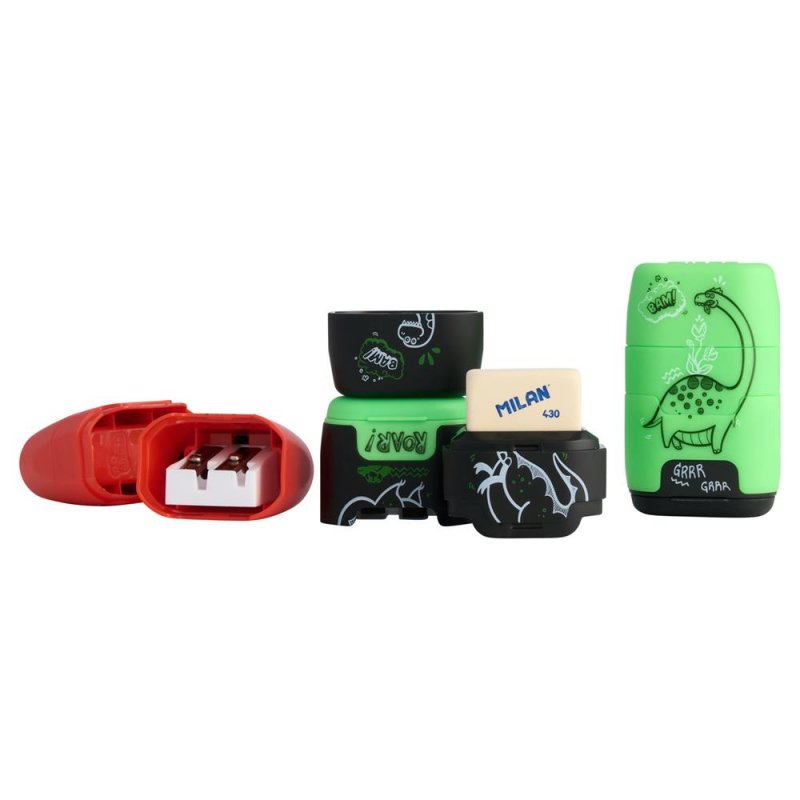 Milan Twin Hole Sharpener/eraser - Dinosaur 3 Asst Cdu