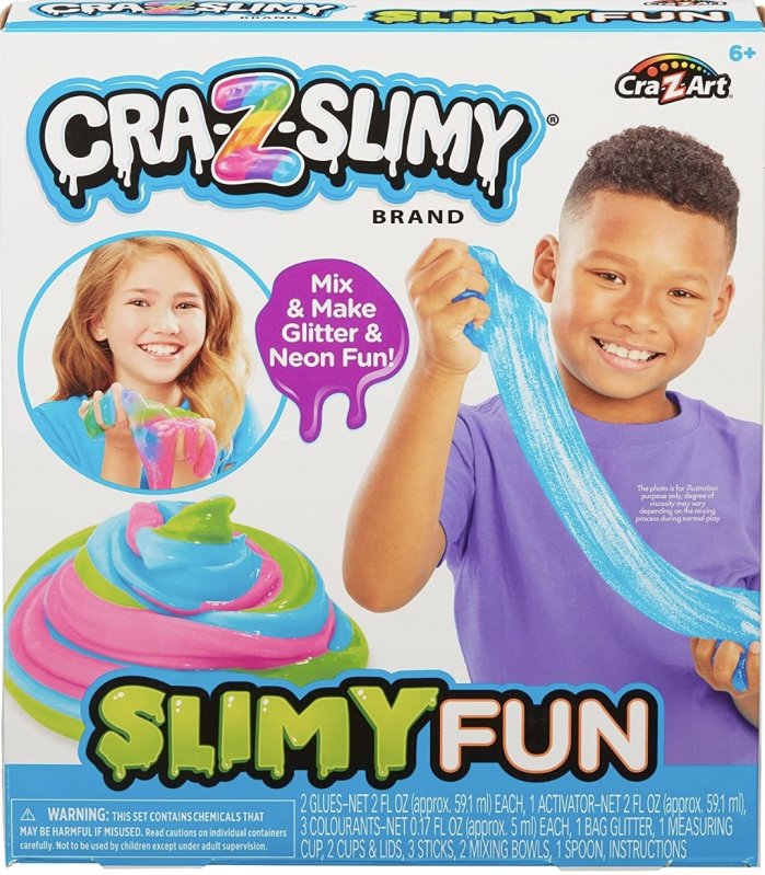 Includes everything you need to make your very own slime. Experiment with neon and glitter slime. Our slimes are quality checked and made with safe fun in mind. For ages 6 years and over.
