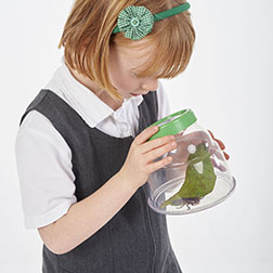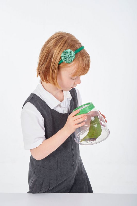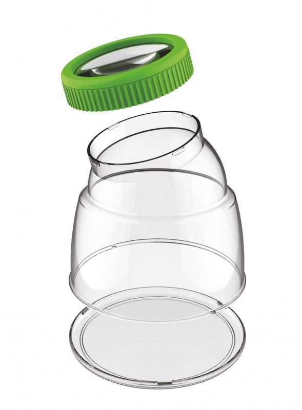 Ventilated viewing pot with 5x magnification lid to observe minibeasts in detail. Opens both ends for easy access. Clear base with micro ruler. Size: 135mm.