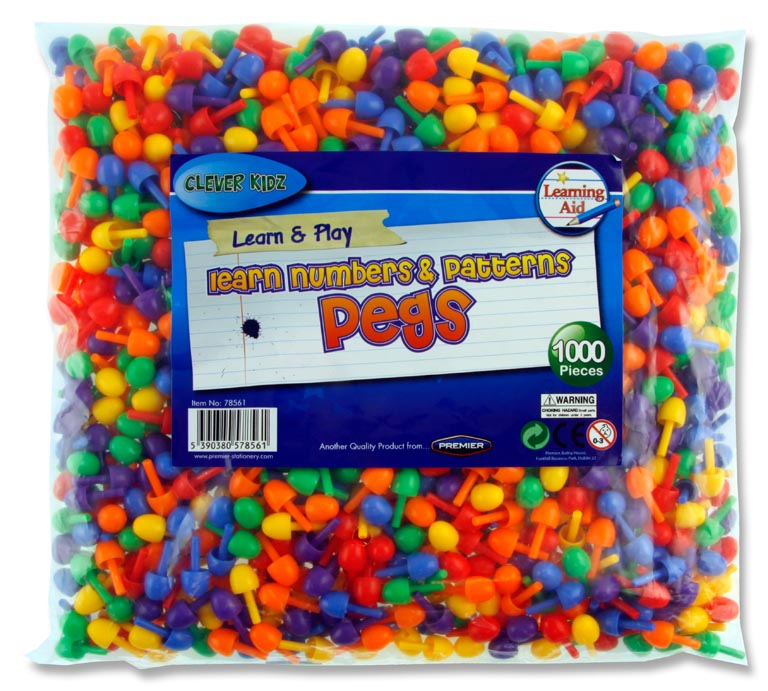 CLEVER KIDZ BAG 1000 COLOURED PEGS FOR PEG BOARDS