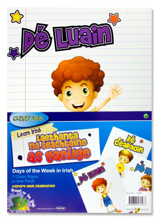 * CLEVER KIDZ PKT.7 CLASS SIGNS - DAYS OF WEEK IN IRISH