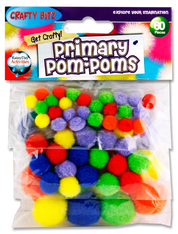 CRAFTY BITZ PKT.60 ASST SIZES POM POMS - PRIMARY