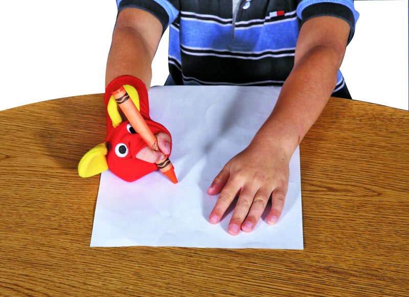 The adorable "sock" pal maintains proper grasp. Created by a therapist, the Ellie Grip teaches kids the elephant-strong way to hold a pencil. Each Ellie Grip has two properly located holes for the first finger and thumb. The rest of the fingers remain inside the sock.