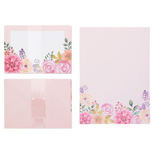 I LOVE STATIONERY A5 WRITING SET & ENVELOPES - PINK POSIES