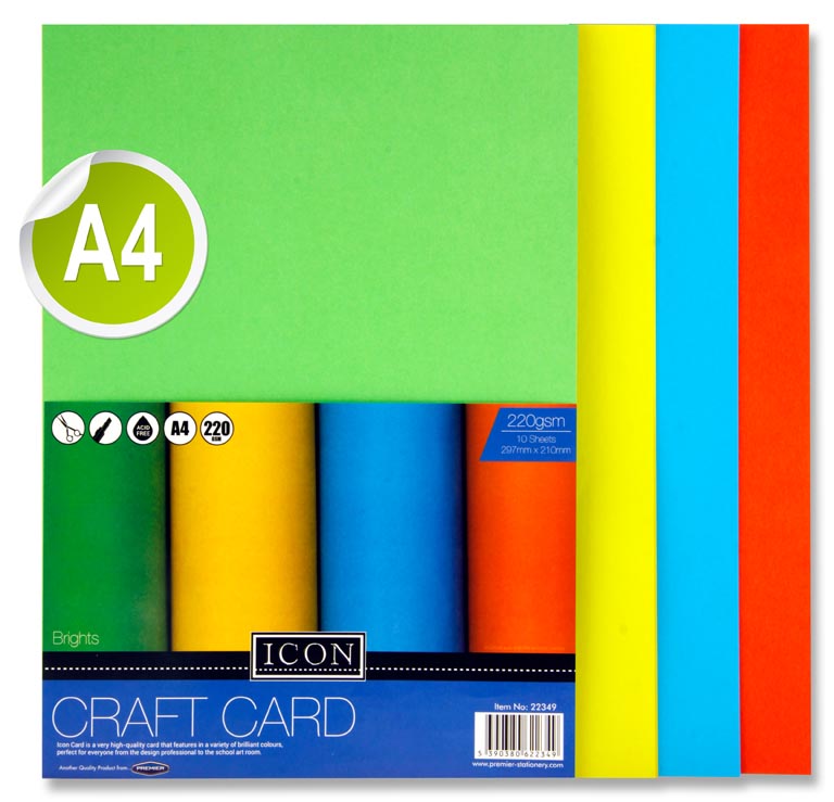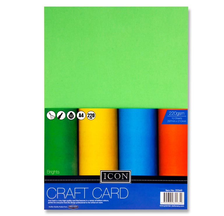 ICON PKT.10 A4 220gsm CRAFT CARD - BRIGHTS