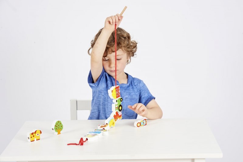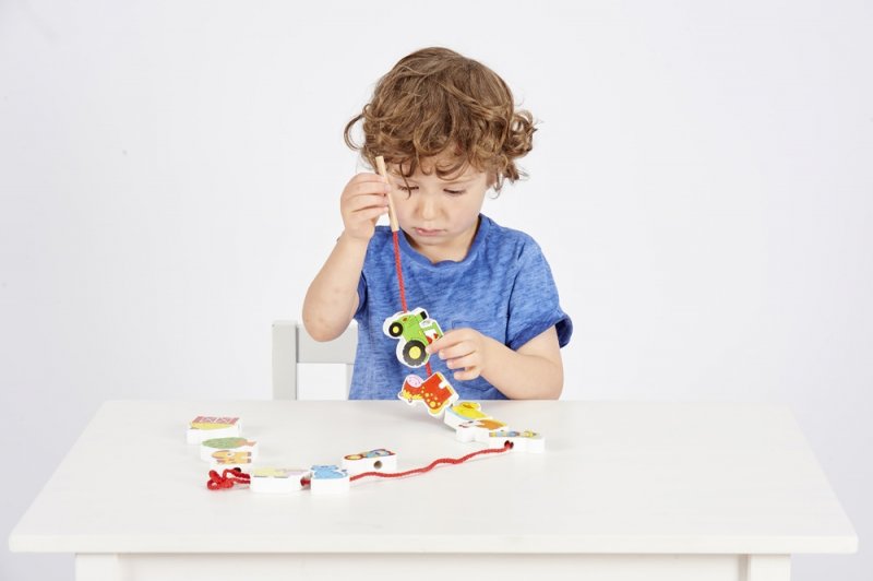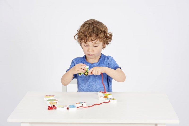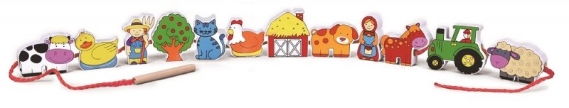 Ideal for using in story-telling, each set includes 12 farm wooden blocks and one lace. Each block is painted on both sides and the lace is connected with a small wooden bar which is easy for small hands to use. Average height of blocks 60mm. Pk12 + 1 lace. |