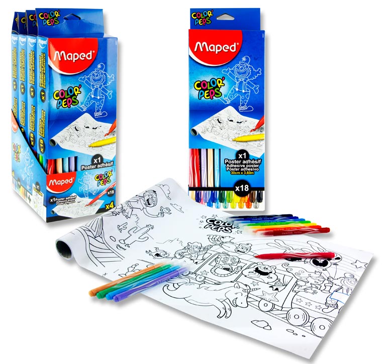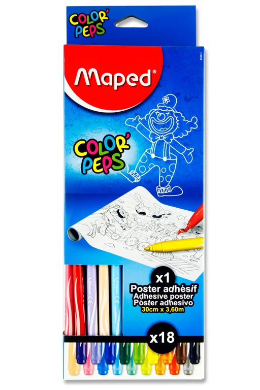 MAPED COLOR'PEPS 30cm x 3.6m ADHESIVE COLOURING ROLL & 18 MARKERS CDU