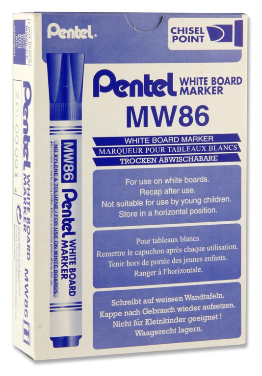 PENTEL MW86 WHITEBOARD MARKER CHISEL POINT - BLUE