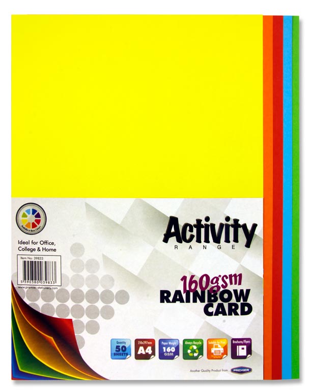 PREMIER ACTIVITY A4 160gsm CARD 50 SHEETS - RAINBOW
