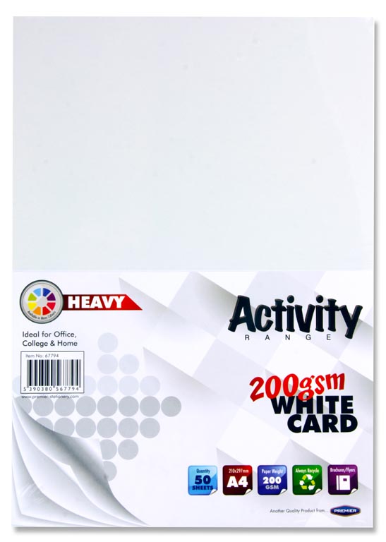 PREMIER ACTIVITY A4 200gsm HEAVY CARD 50 SHEETS - WHITE