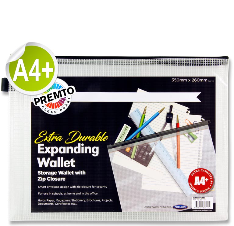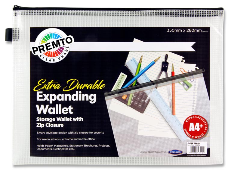 PREMTO A4+ EXTRA DURABLE EXPANDING MESH WALLET - CLEAR PEARL