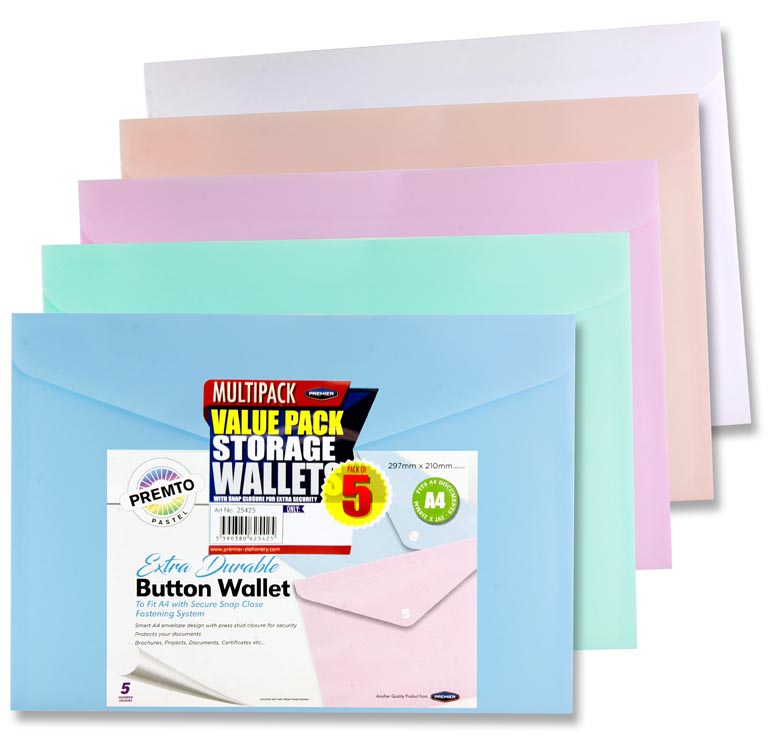 PREMTO PASTEL PKT.5 A4 BUTTON WALLET