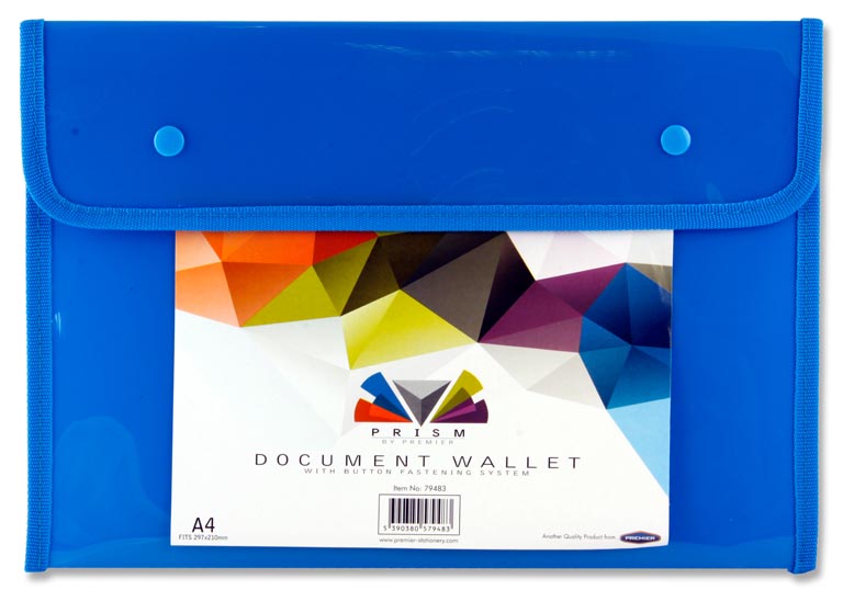 * PRISM A4 BUTTON DOCUMENT WALLET 3 ASST.