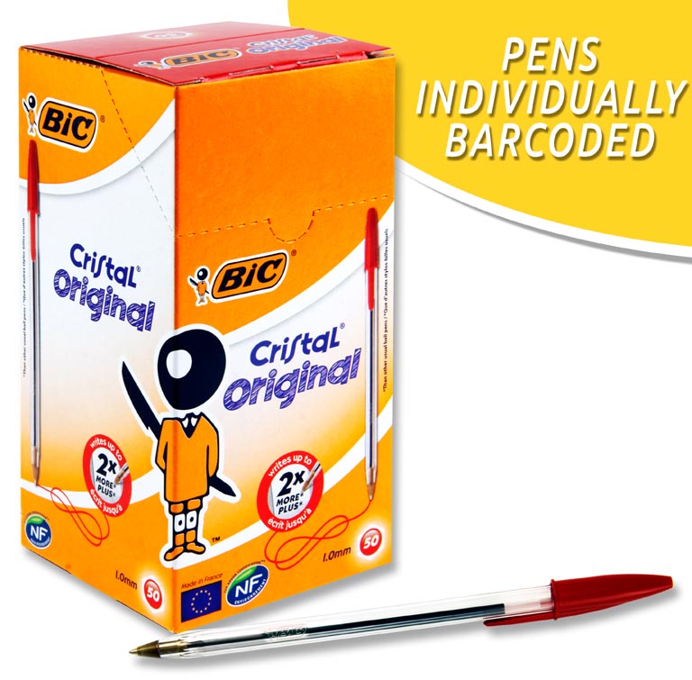 * BIC BOX 50 CRISTAL ORIGINAL BALLPOINT PENS - RED