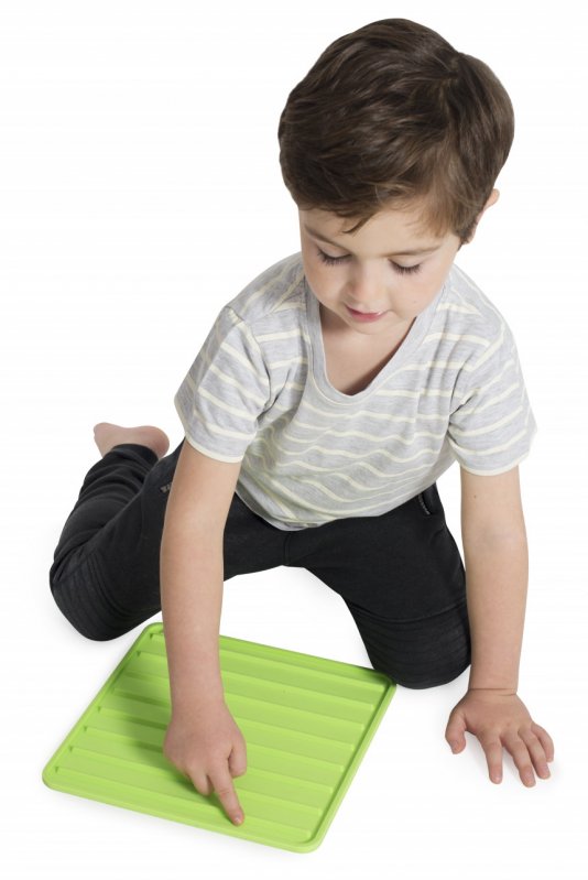 Stimove Sensory Mats 5 piece set. The mats have different shapes, structures and colours. This set contains 5 sensory texture mats with different shapes, colors and textures: 1 yellow circle with a circled surface, 1 green square with a lined surface, 1 orange triangle with a triangular surface, 1 pink flower with a bumpy surface and 1 blue hexagon with a pointed surface. Suitable for children from 3 years. |
