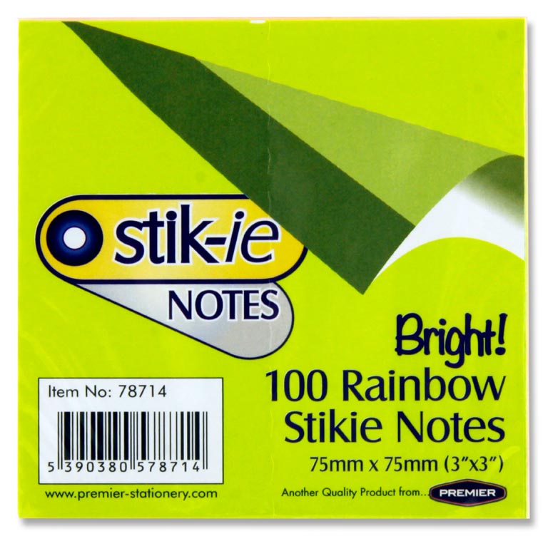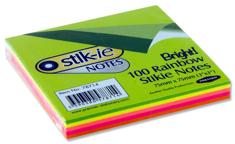 STIK-IE NOTES 75x75mm - 5 COL RAINBOW