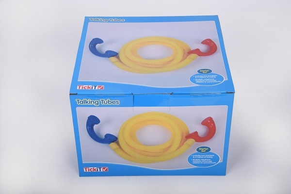 Talking Tubes®, one of our best selling products, can be used in any educational setting, both indoors and outdoors, to develop children’s communication, personal and social skills. The starter set can be used to communicate across a small distance, between rooms, across an outdoor area or even between the indoor and outdoor environments. The Talking Tubes® set here includes 2 handsets and 3 metres of strong yellow, hollow flexible tubing. Handsets simply plug into the ends of the tubing. Handset length approx. 200mm. Talking Tubes® is a patented design. Features: - Can be used inside or out - Strong plastic design - Can easily be washed clean after use |